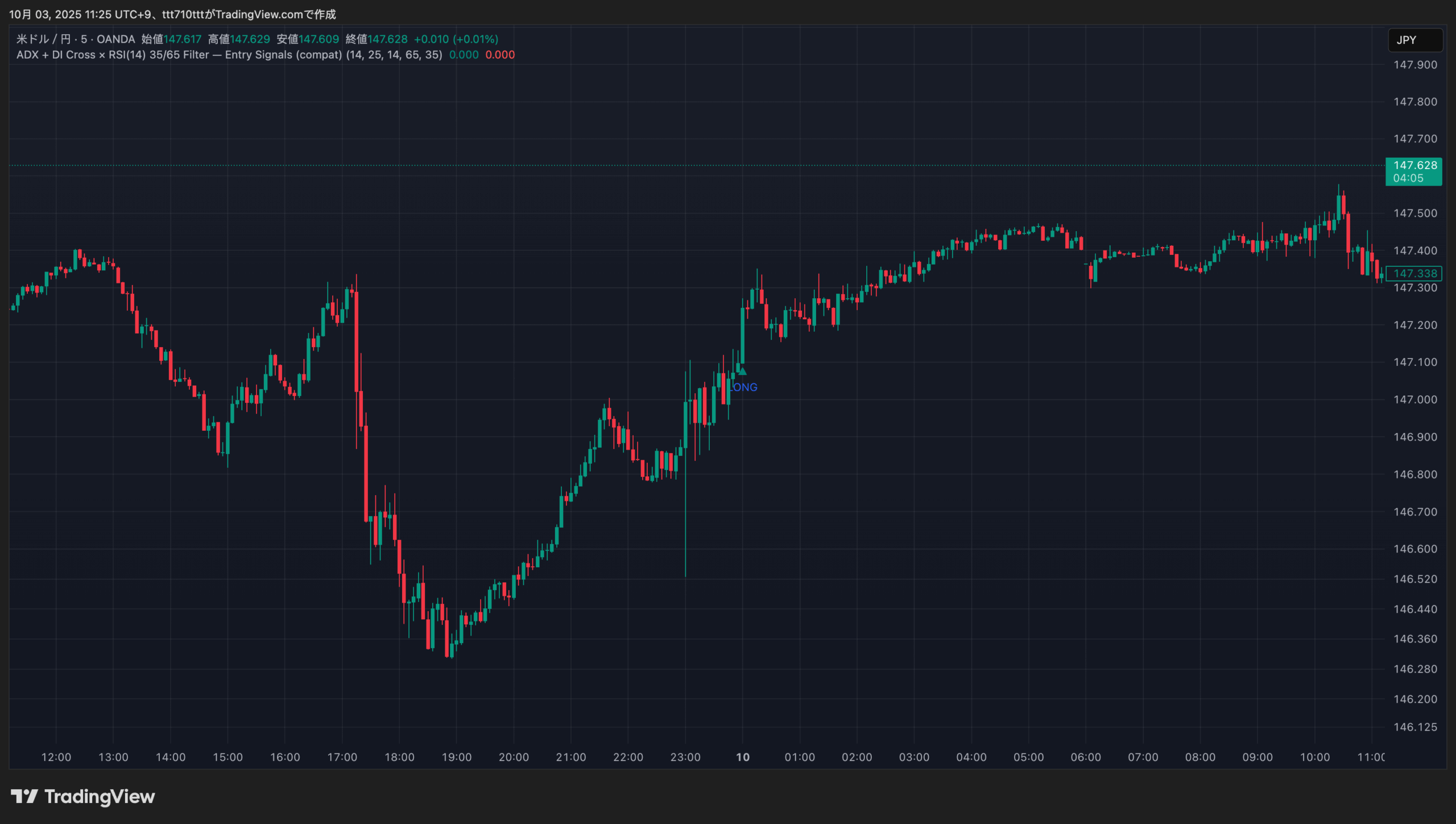 // ===== エントリー条件(+DI/-DIクロス × ADX≥25 × RSIフィルタ)=====