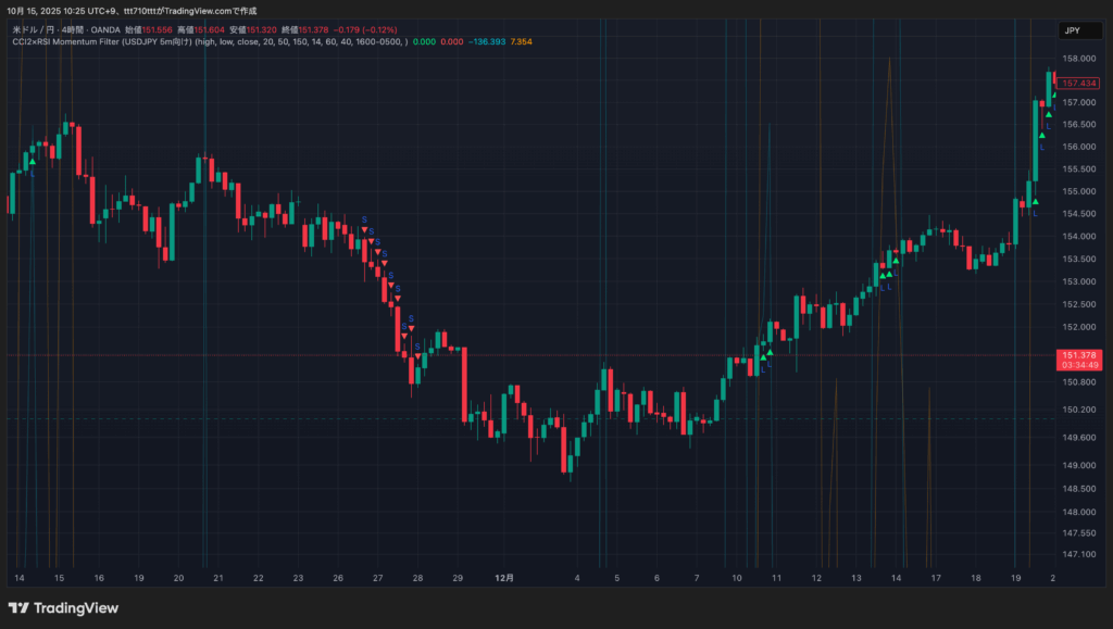 CCI20・CCI50を±150に強化した順張り+RSI