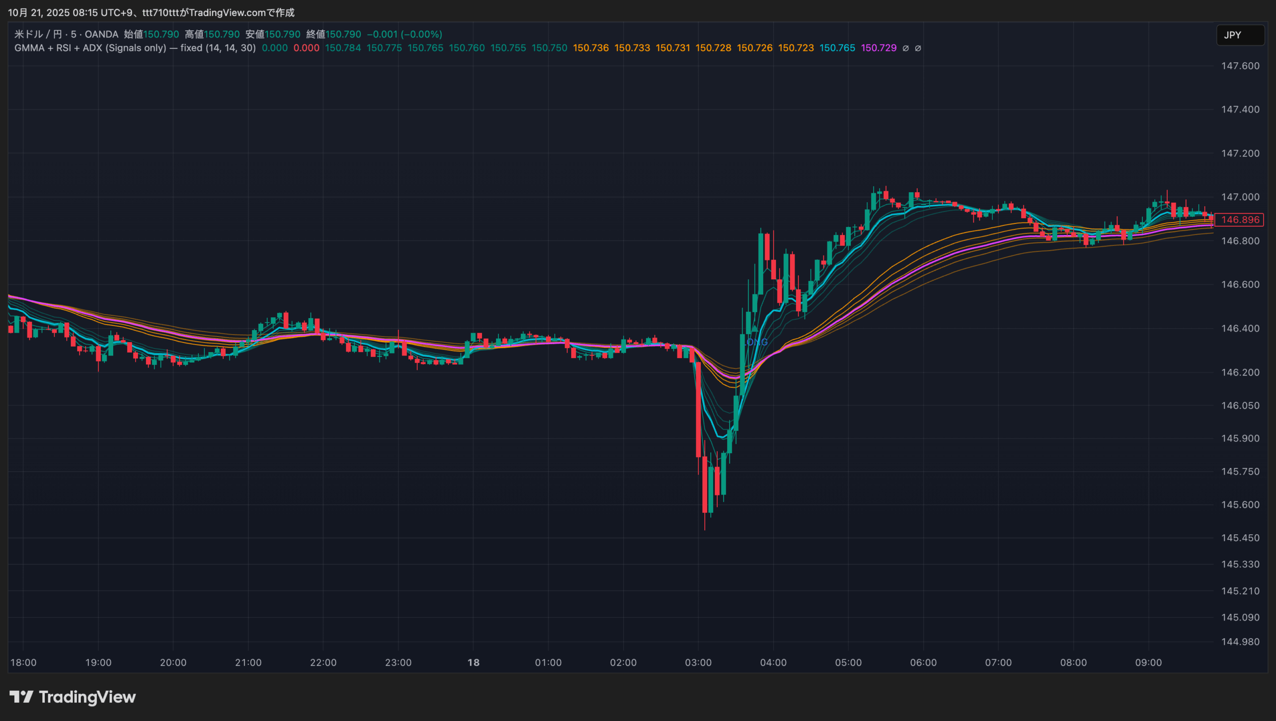 | GMMA+RSI+ADX | 1.26 | トレンド抽出で安定化 |
