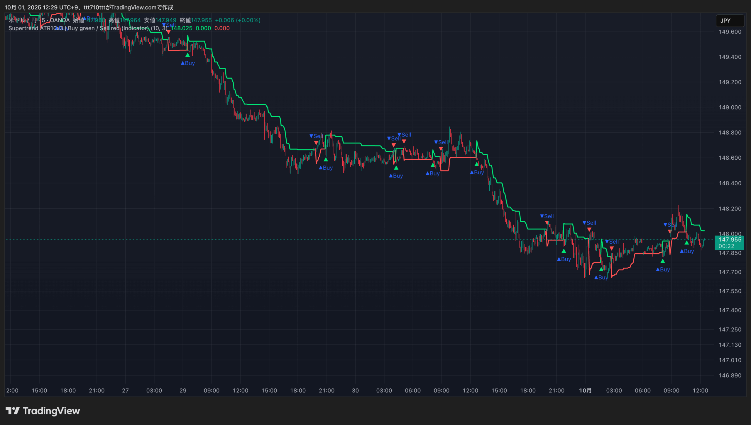 ・設定:ATR=10、乗数=3